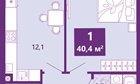 1-к квартира, 1/4 эт., 41м²
